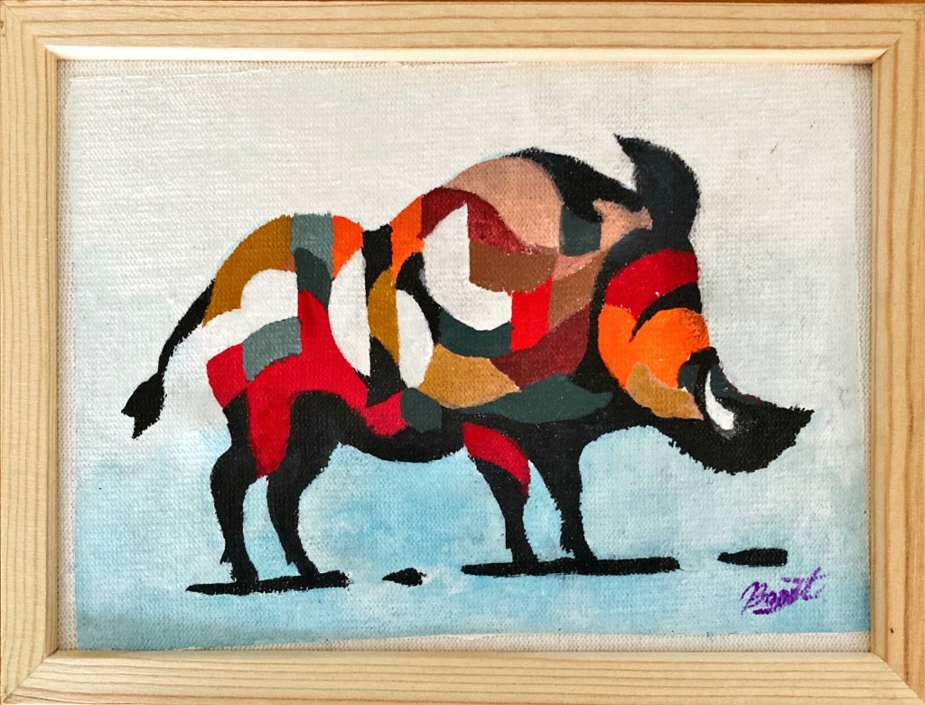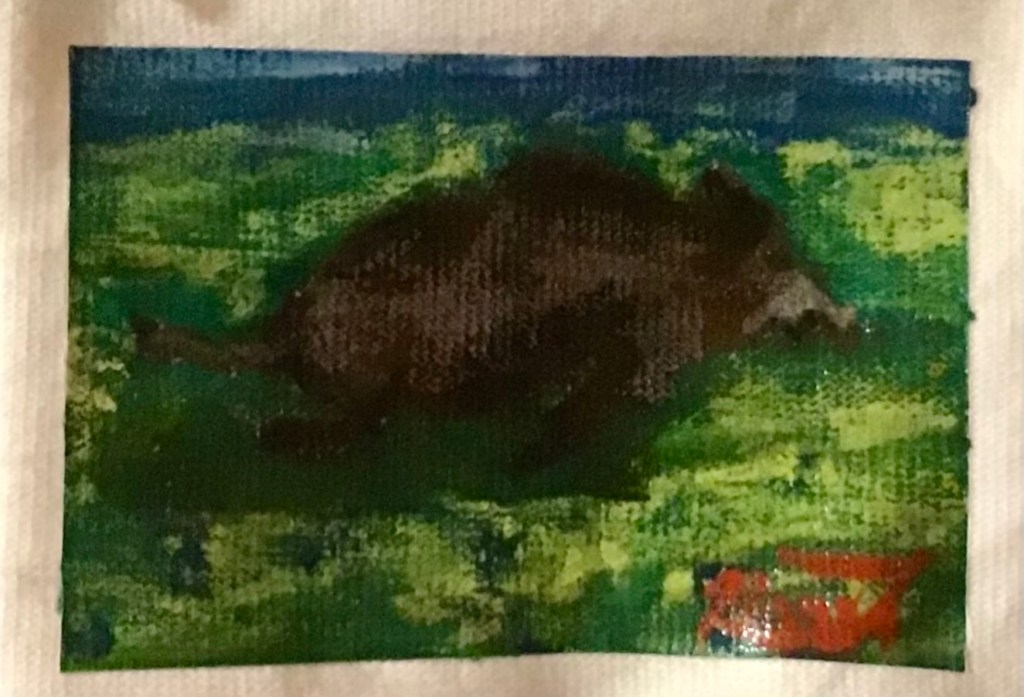 色と形が交錯するこの猪は、単なる動物ではなく、季節の境界を駆け抜ける象徴的存在。 秋の始まりに、私たちの内なる衝動と、土地に宿る記憶が交差する瞬間を捉えている。
